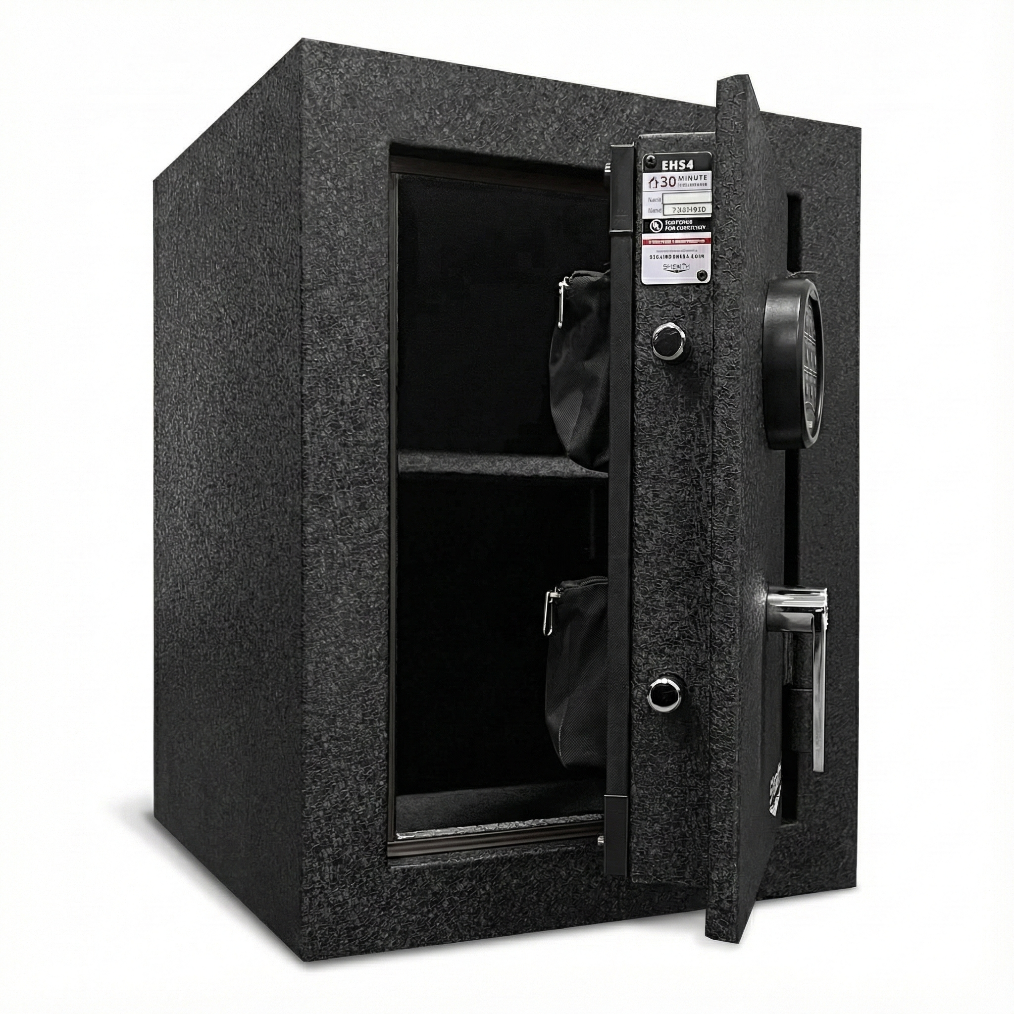 The EHS4 is styled with a chrome drop down handle and Stealth's unique Armored black textured finish. Two bolt down holes and mounting hardware is included to secure the safe to the floor.