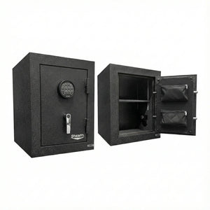 Made with a 14 gauge steel body and door, this Essential Home and Office Safe will do a great job of keeping your valuables locked away and secure. Keeping the door in place are 4 solid steel chrome-plated 3/4" locking bolts, with two being active and two deadbolts on the hinge side. The door opens on two external pin hinges after the correct combination is entered into the SECURAM Safelogic TopLit High Security Electronic lock. Providing extra protection to the lock is a steel hard plate and internal re-locker that will keep the bolts locked if a thief were to attempt a punch or drill attack.