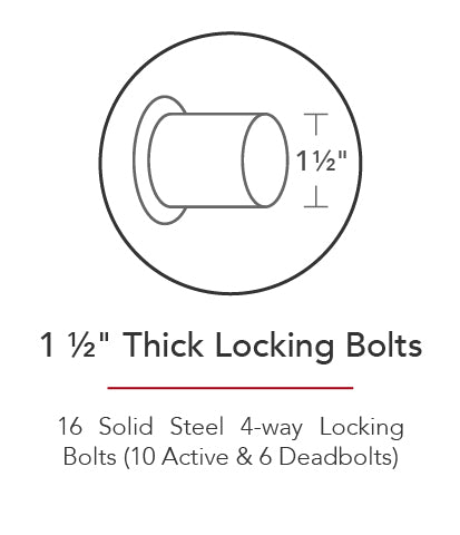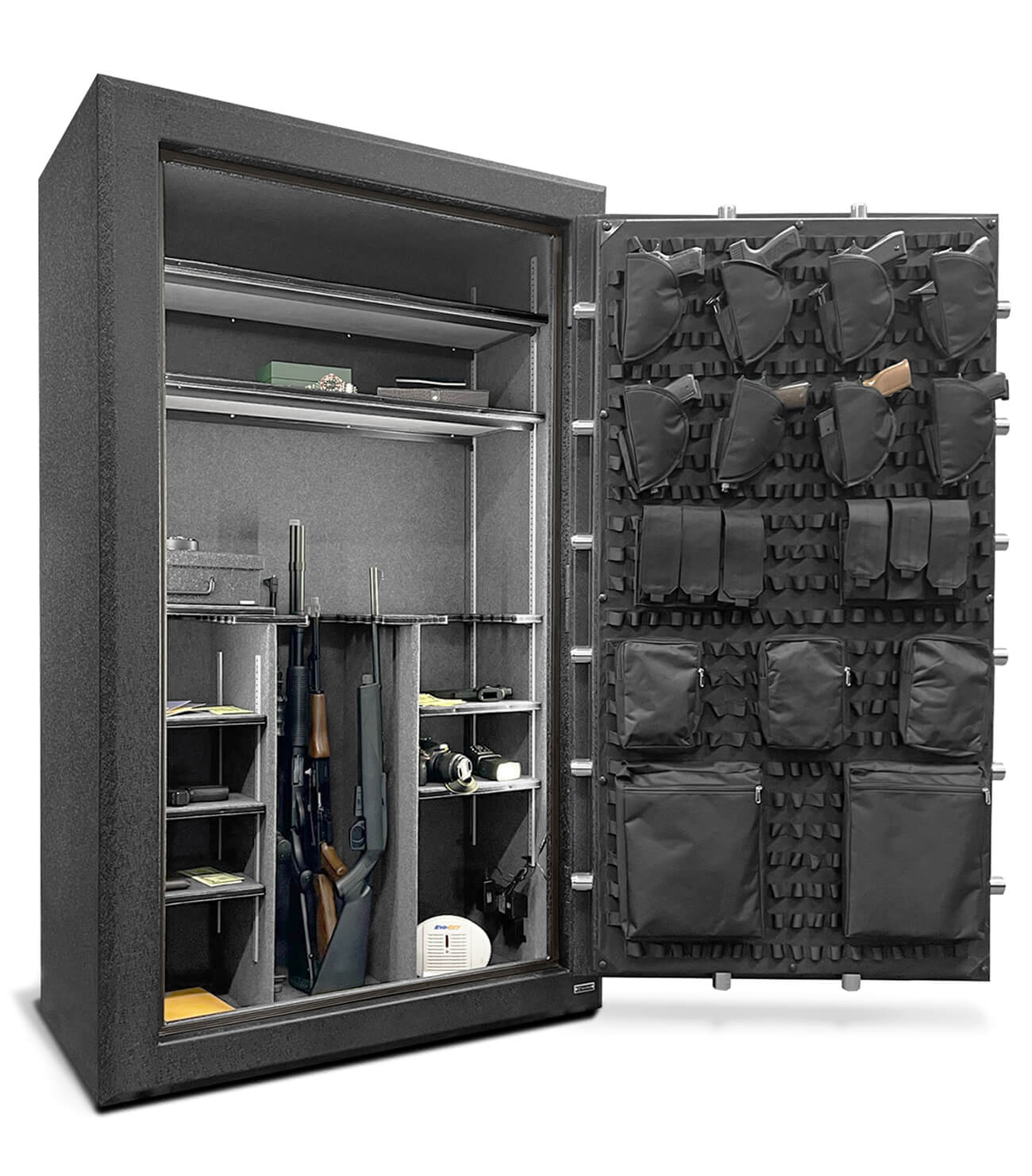 The Stealth PR50 gun safe includes the UL Approved NL UR-2020 High Security Electronic Lock standard. This lock is the most reliable lock in the safe industry and is assembled and tested in the USA. The lock is also protected by a hard plate and internal re-locker that will keep the bolts locked if a thief were to attempt a punch or drill attack. The S&G Mechanical lock and NL Redundant Lock are also available lock options.