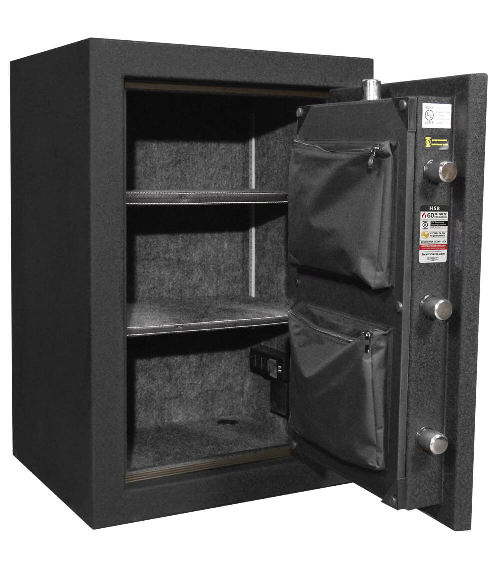 The Stealth HS8 Home and Office Safe also includes an electrical outlet kit with 3 outlets and 2 USB slots so that you can charge your electronics inside the safe.