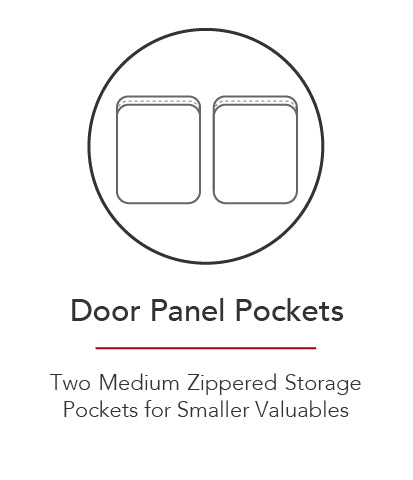 The Stealth HS8 comes standard with a door panel organizer on the back of the door with two zippered pockets that allow for additional storage space of your small valuables. Conveniently store your passport, some cash and other small valuables in the pockets on the back of the door.
