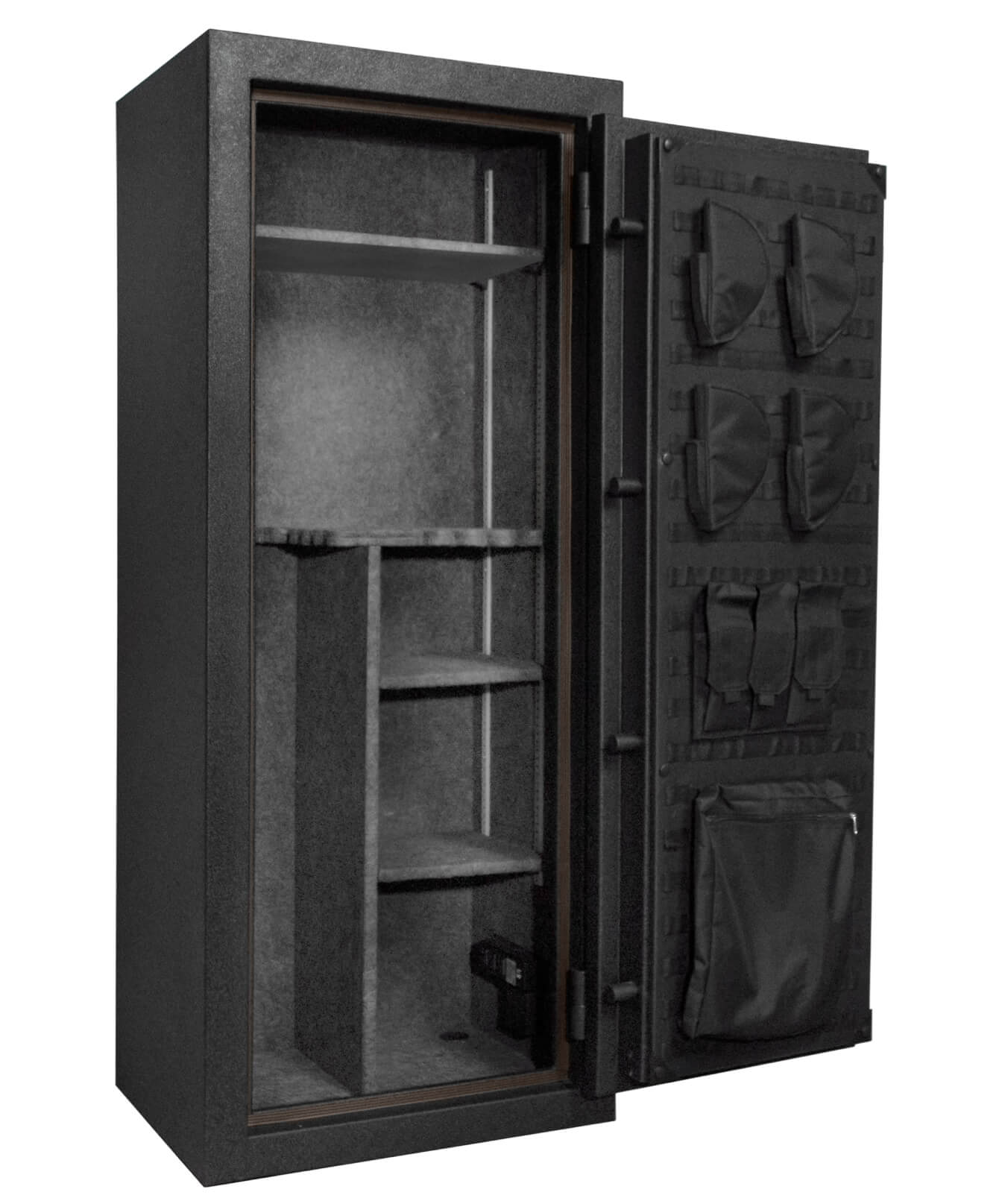 CA DOJ Approved and made with a 14 gauge steel body and door, the Stealth EGS23 will do a great job of keeping your firearms locked up and secure. Keeping the door in place are 8 solid steel chrome-plated 1" locking bolts, with four being active and four deadbolts on the hinge side. The door opens on two external pin hinges after the correct combination is entered into the UL Approved NL Universal Lock UR-2020 High Security Electronic Lock. This lock is the most reliable lock in the industry and is assembled and tested in the USA. The lock is also protected by a hard plate and an internal re-locker that will keep the bolts locked if a thief were to attempt a punch or drill attack.