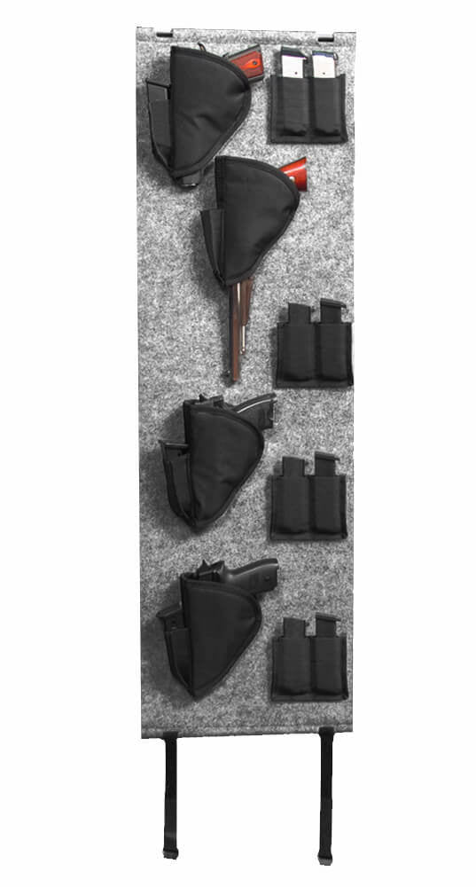 Have you noticed that it takes the handgun off the shelf, but leaves you absolutely nowhere to put the magazines? Most people just throw their magazines on the shelves leaving them cluttered, unorganized and susceptible to banging into each other causing scratches and numerous other cosmetic defects. What if you could put your gun's magazines right next to the gun? No more clutter, no more banged up mags, just a clean, organized and efficient safe.