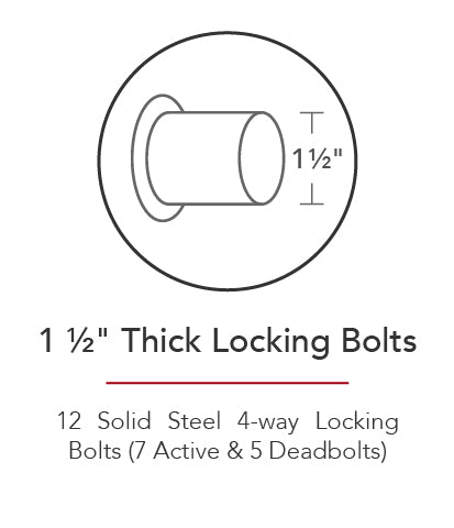 The Stealth Premier 32 gun safe includes the UL Approved NL UR-2020 High Security Electronic Lock standard. This lock is the most reliable lock in the safe industry and is assembled and tested in the USA. The lock is also protected by a hard plate and internal re-locker that will keep the bolts locked if a thief were to attempt a punch or drill attack. The S&G Mechanical lock and NL Redundant Lock are also available lock options.
