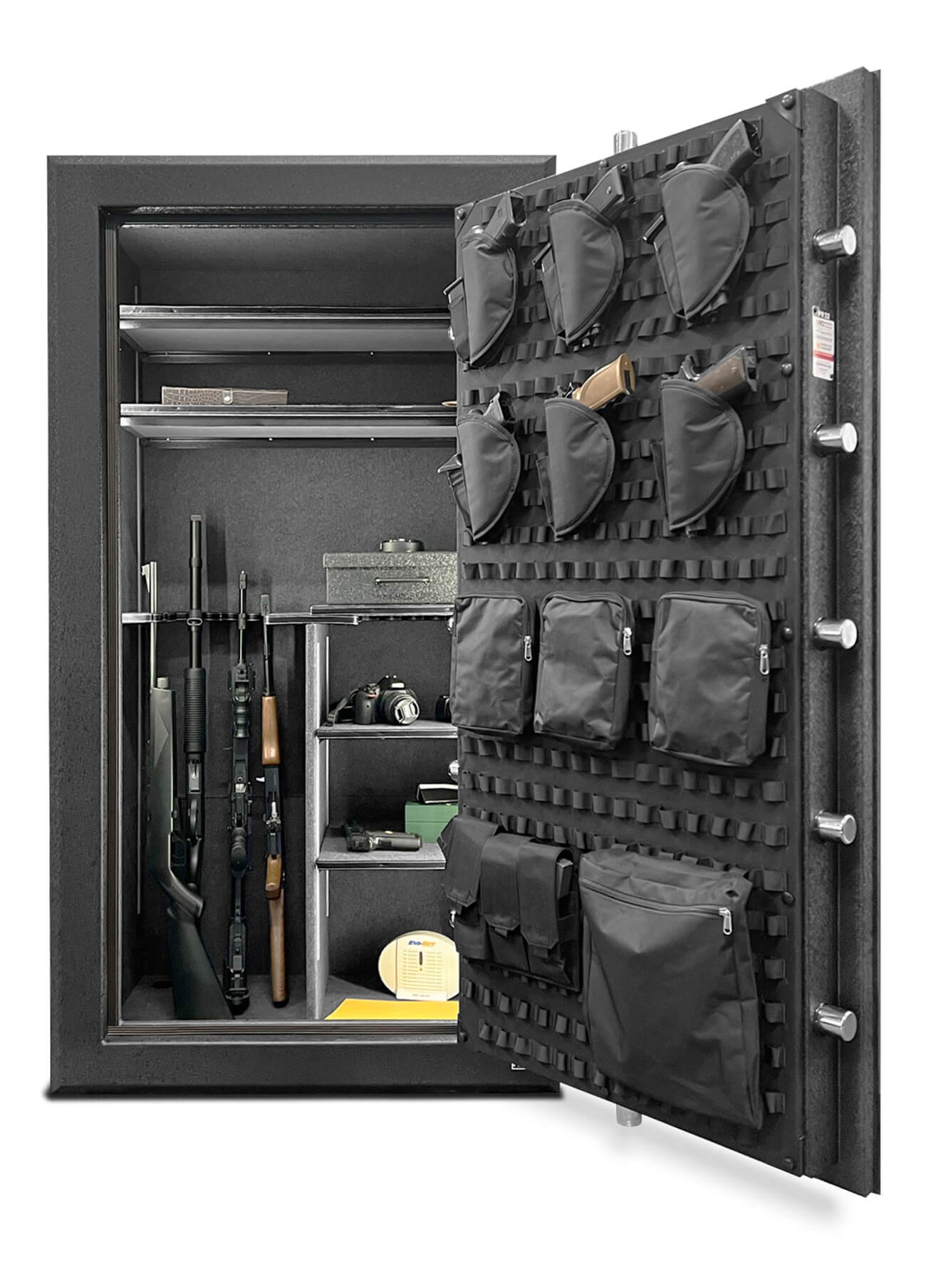 Unique to Stealth Gun Safes is the customizable Molle interior door organizer that helps free up additional space in the safe. This system is far better than sewn-in pockets as the system allows for full customization. Want your pistol holsters at the bottom of the organizer? No problem. Want them lined up on the right side? No problem. Want to get rid of all the included accessories and use your own? Again, no problem! You can add and remove accessories as you need with the convenient strap and snap system.