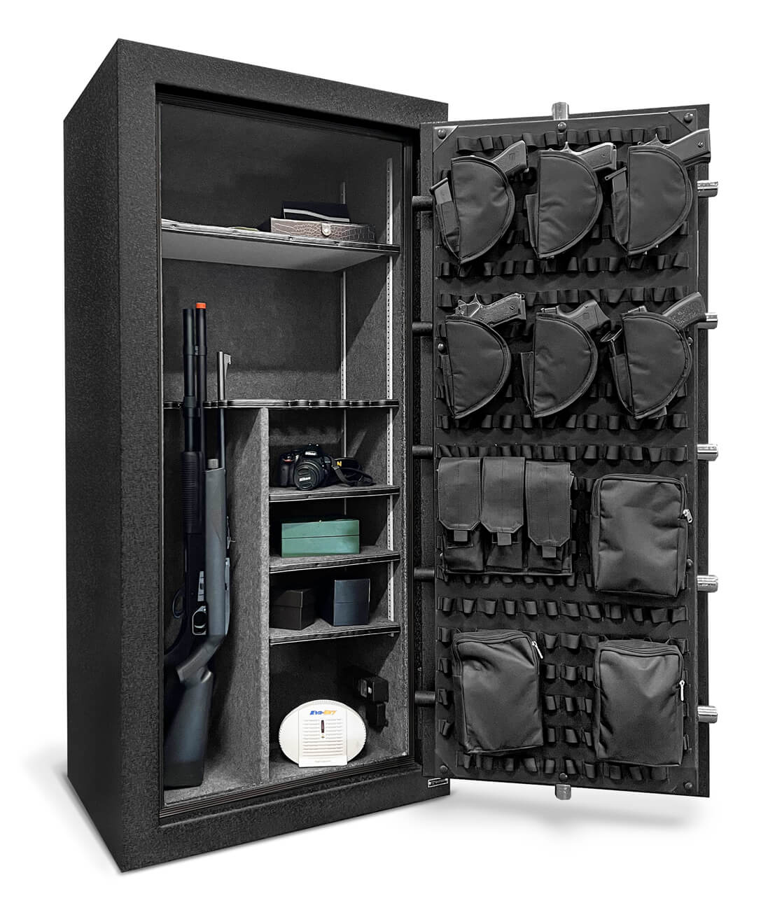 The Stealth UL28 gun safe includes the UL Approved NL UR-2020 High Security Electronic Lock standard. This lock is the most reliable lock in the safe industry and is assembled and tested in the USA. The lock is also protected by a hard plate and internal re-locker that will keep the bolts locked if a thief were to attempt a punch or drill attack. The S&G Mechanical lock and NL Redundant Lock are also available lock options.