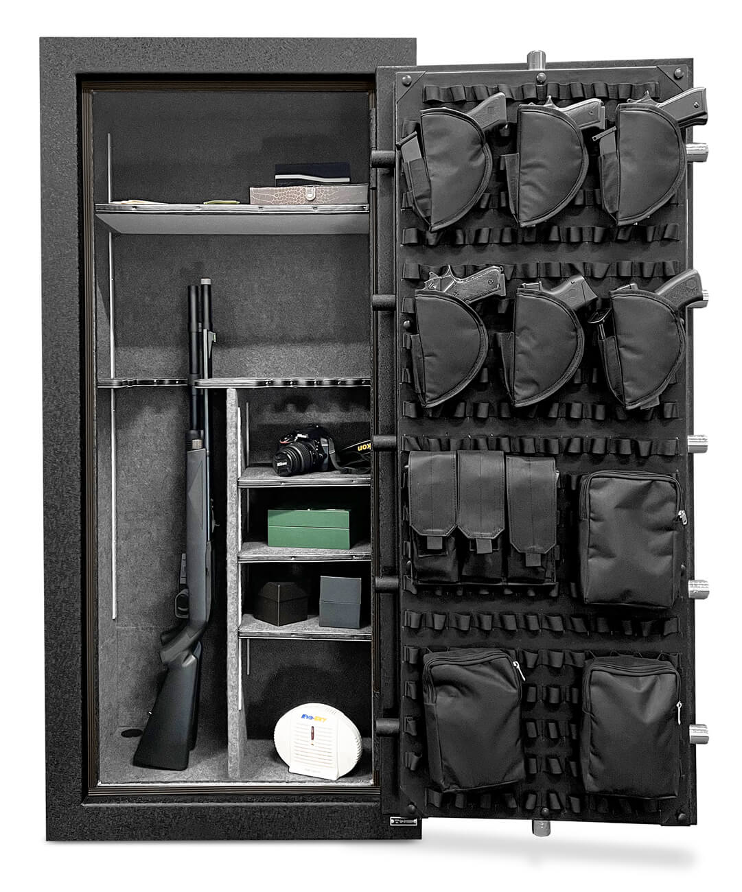 Unique to Stealth Gun Safes is the customizable Molle interior door organizer that helps free up additional space in the safe. This system is far better than sewn-in pockets as it allows for full customization. Want your pistol holsters at the bottom of the organizer? No problem. Want them lined up on the right side? No problem. Want to get rid of all the included accessories and use your own? Again, no problem! You can add and remove accessories as you need with the convenient strap and snap system.
